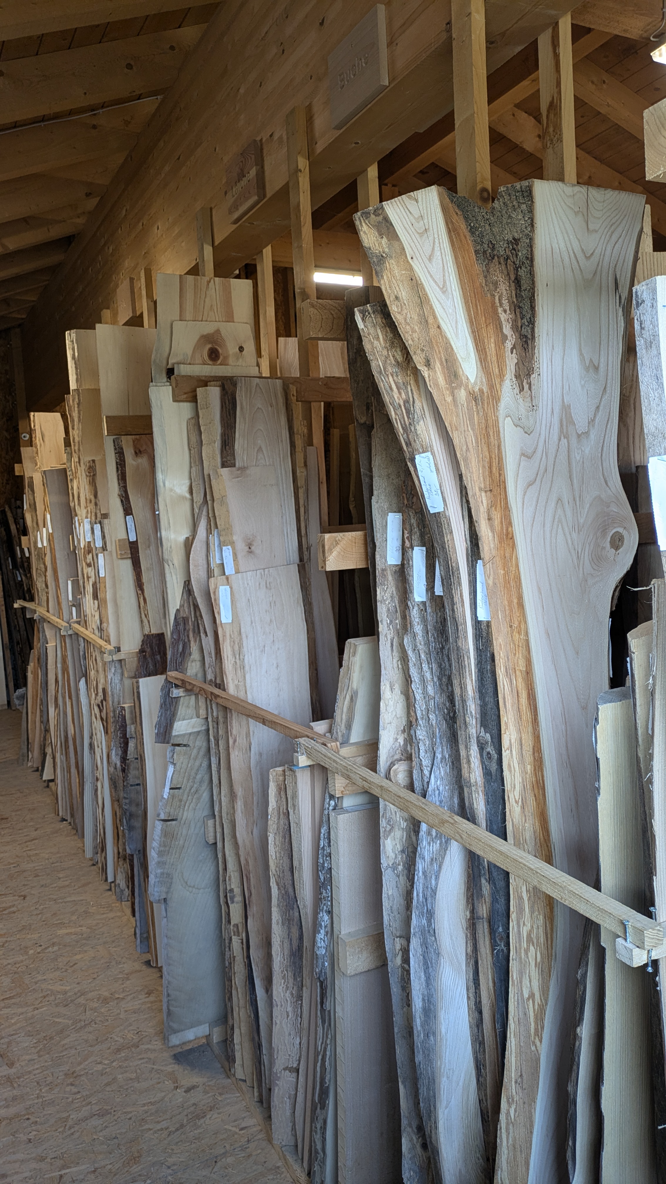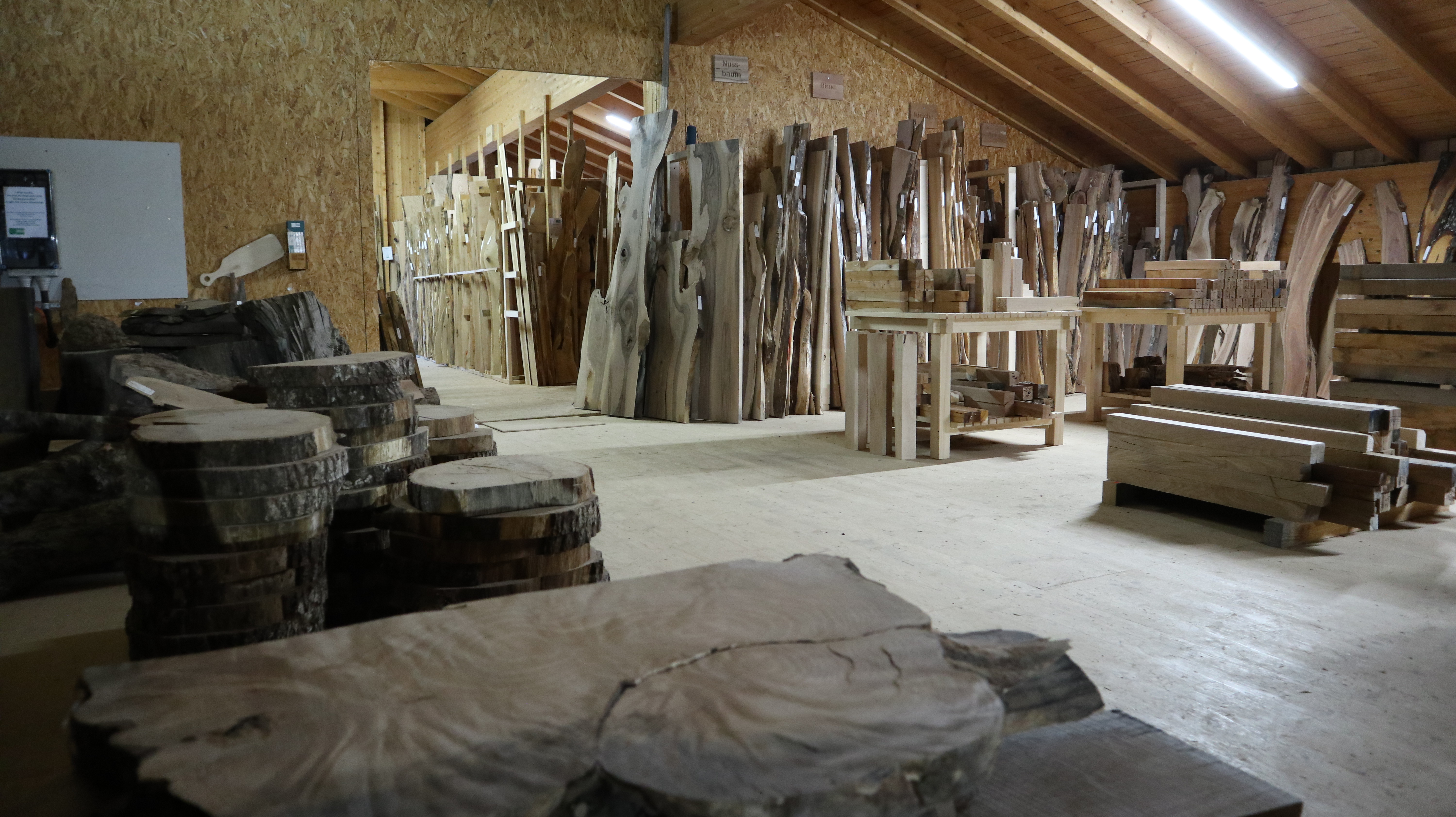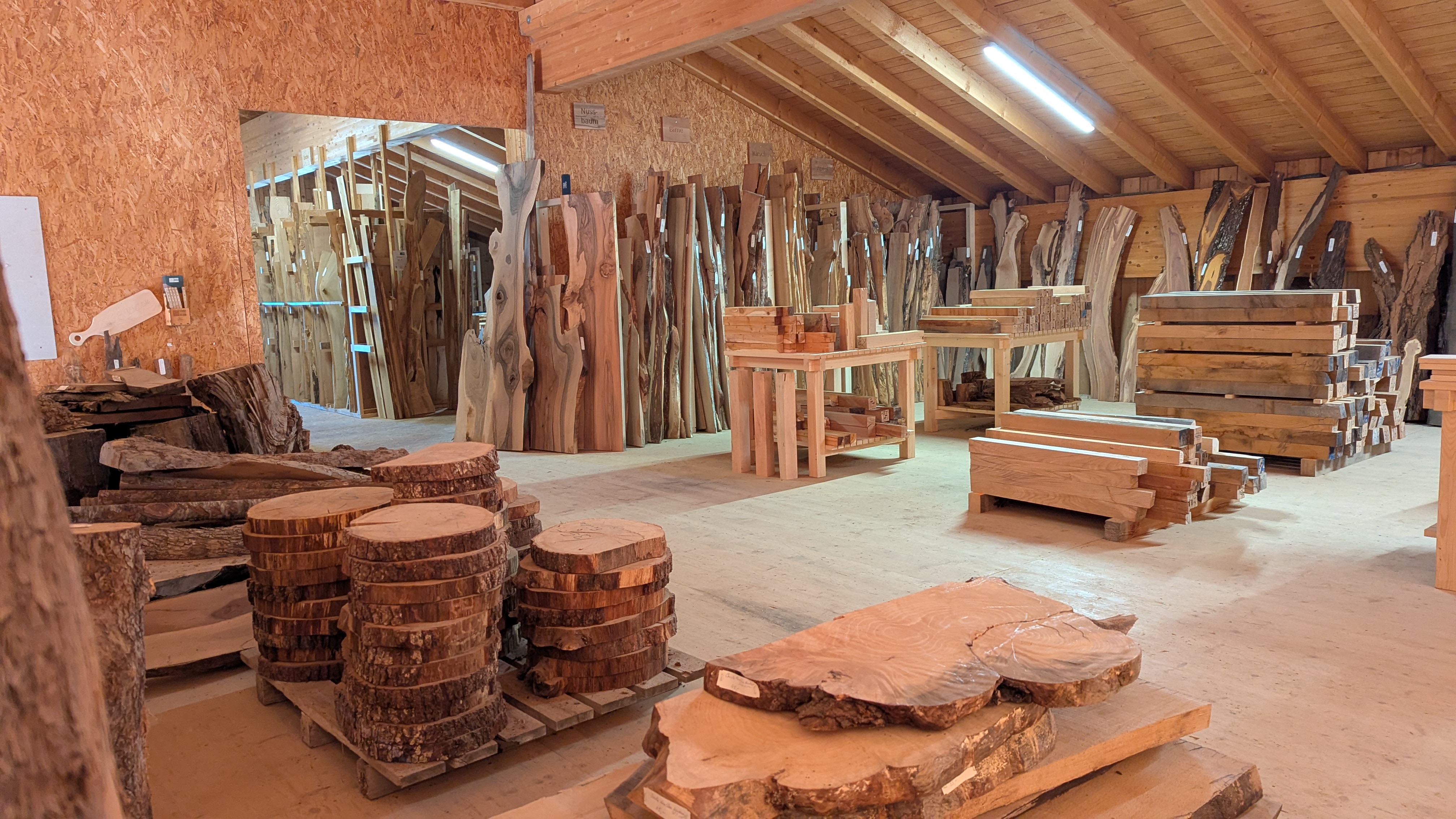 Auf über 200 m² finden Sie nicht nur Material, sondern Inspiration: eine vielseitige Auswahl aus über 30 verschiedenen Allgäuer Holzarten.