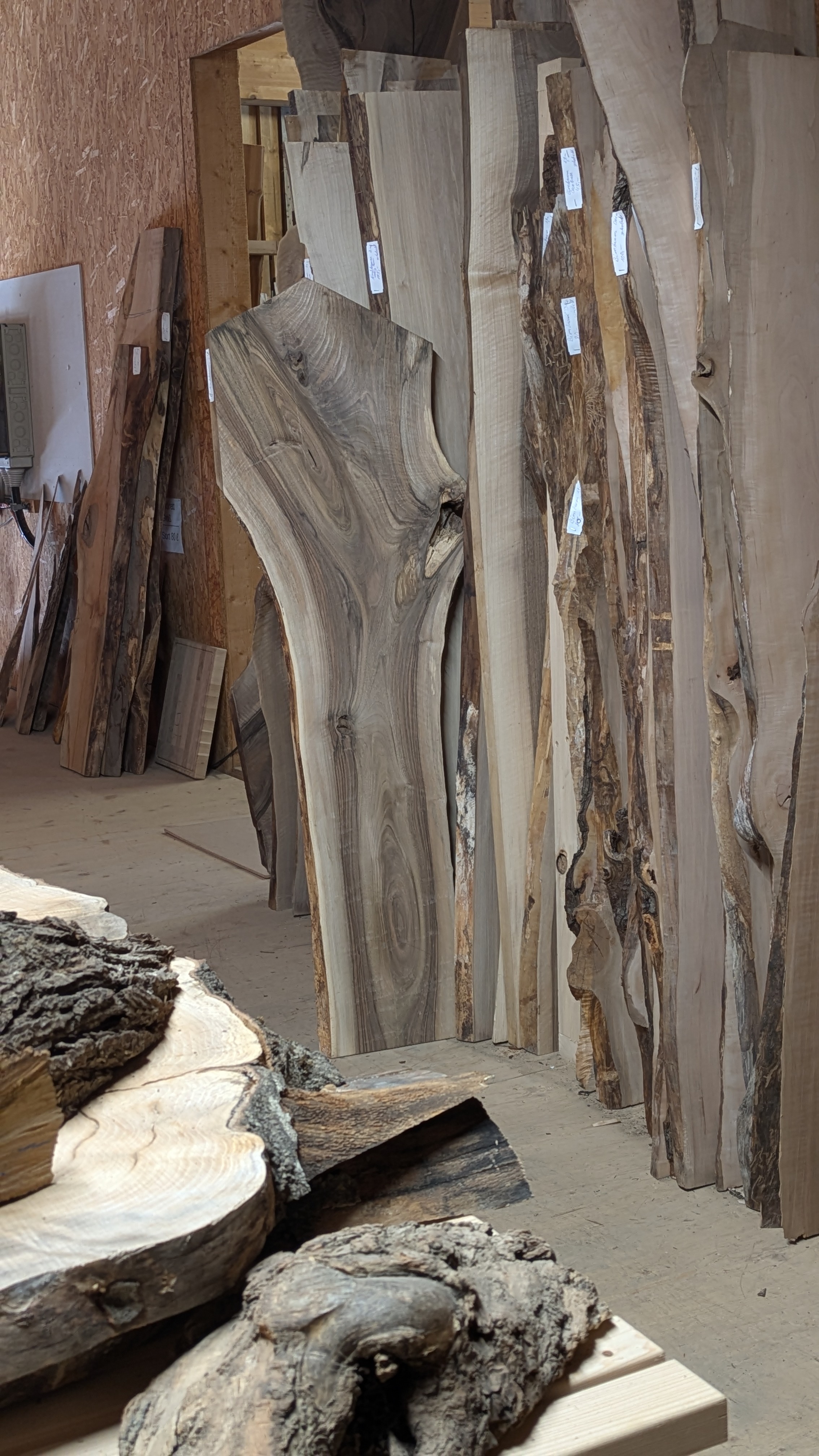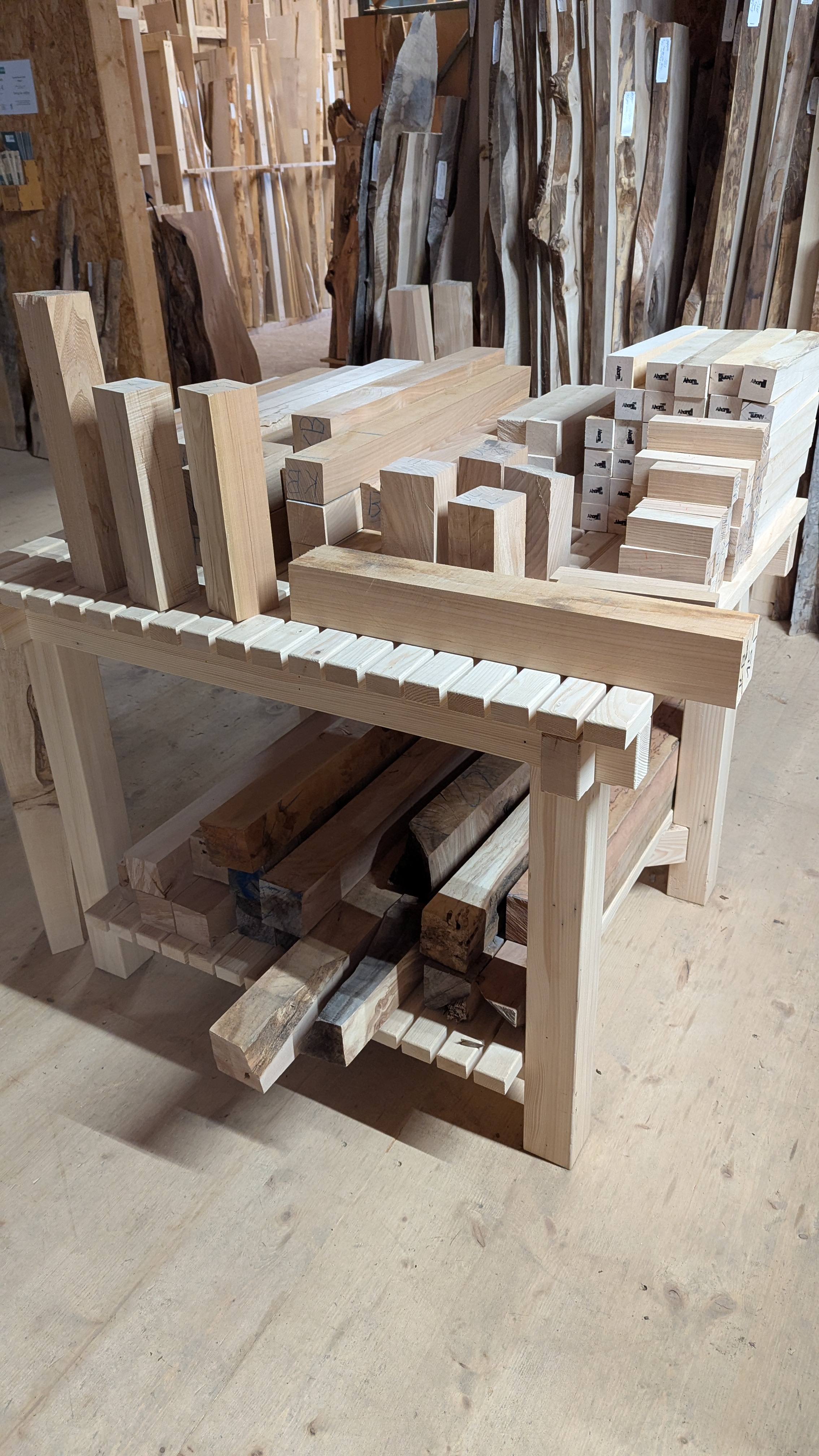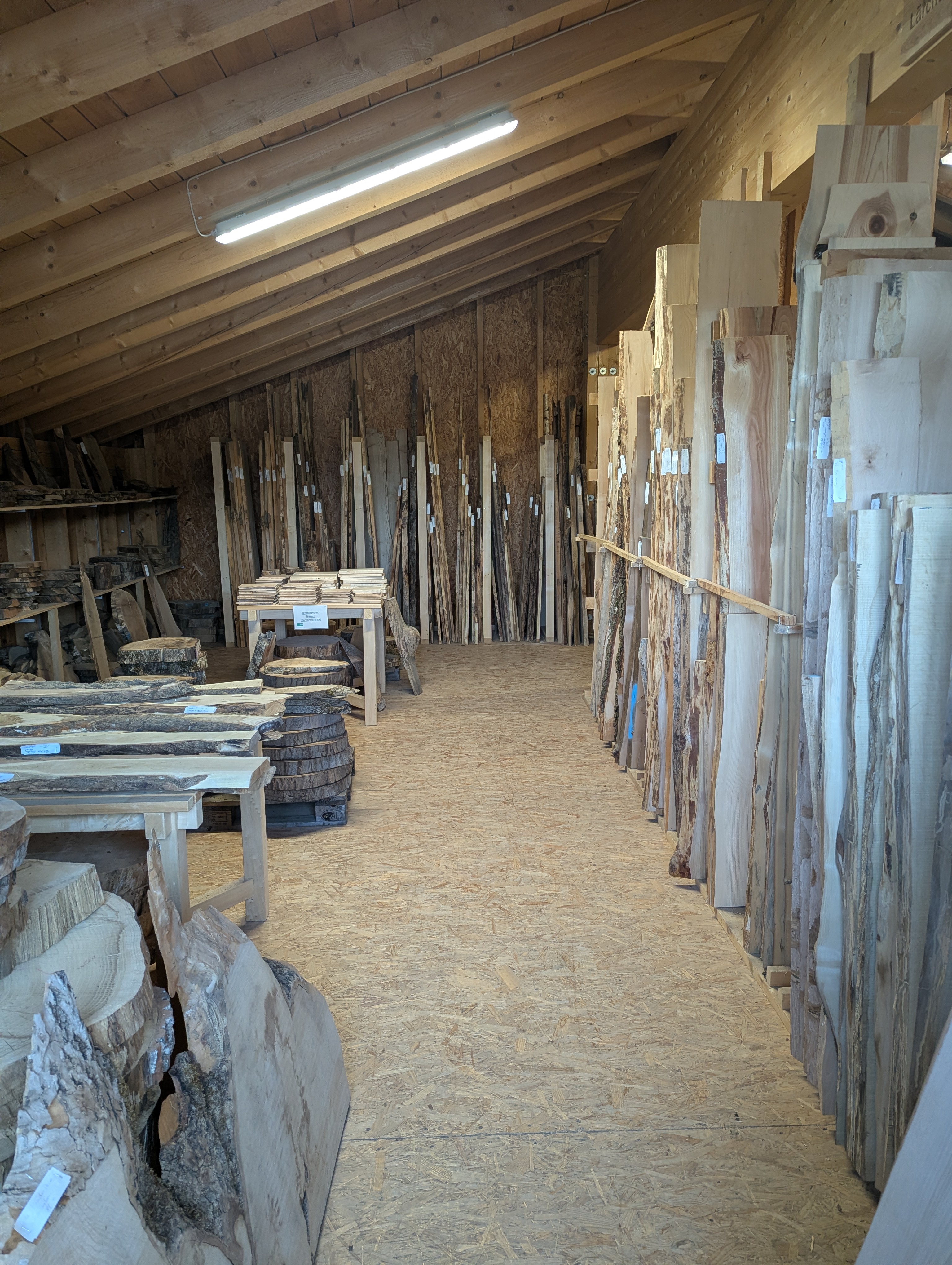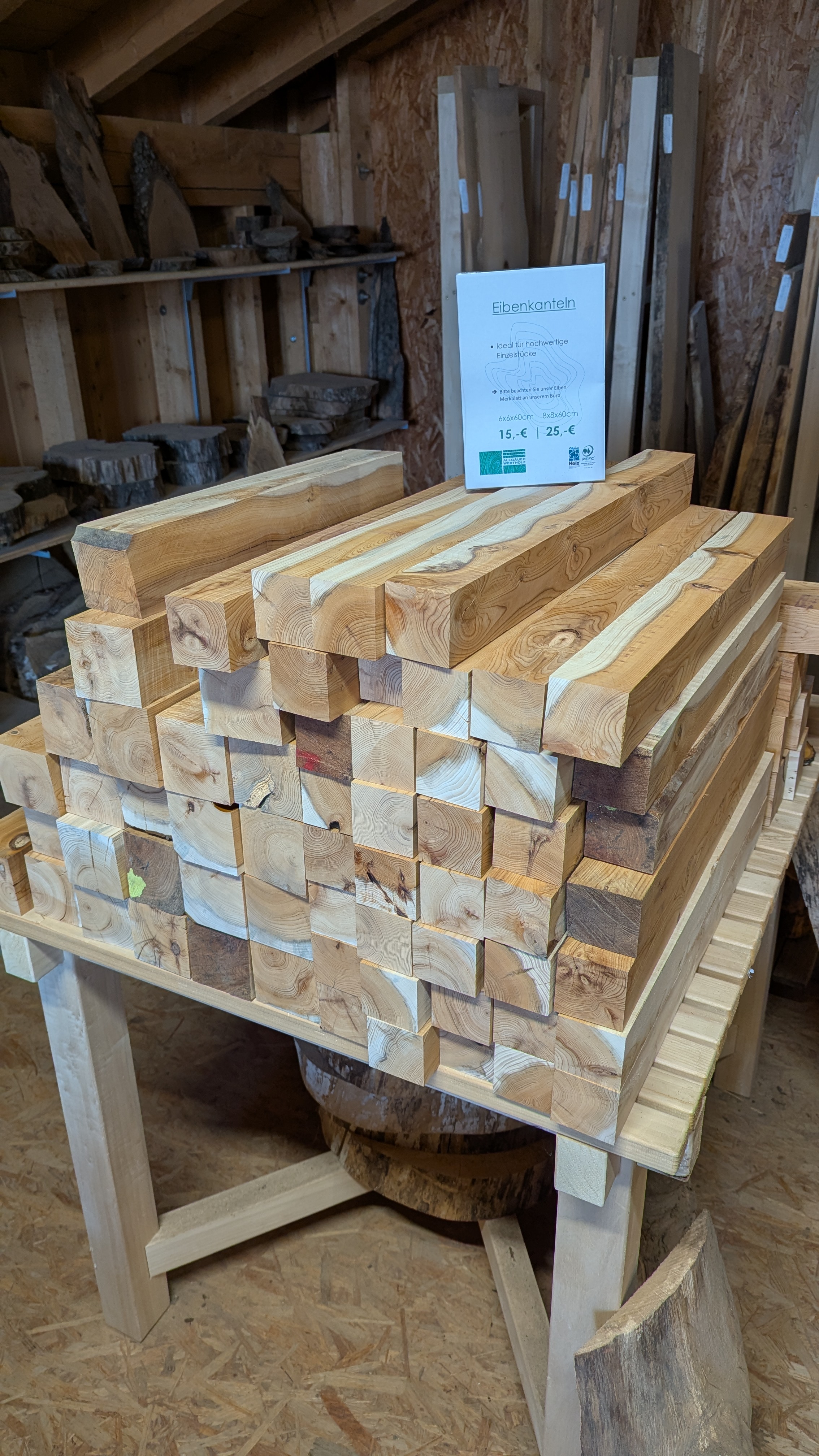 Auf über 200 m² finden Sie nicht nur Material, sondern Inspiration: eine vielseitige Auswahl aus über 30 verschiedenen Allgäuer Holzarten.