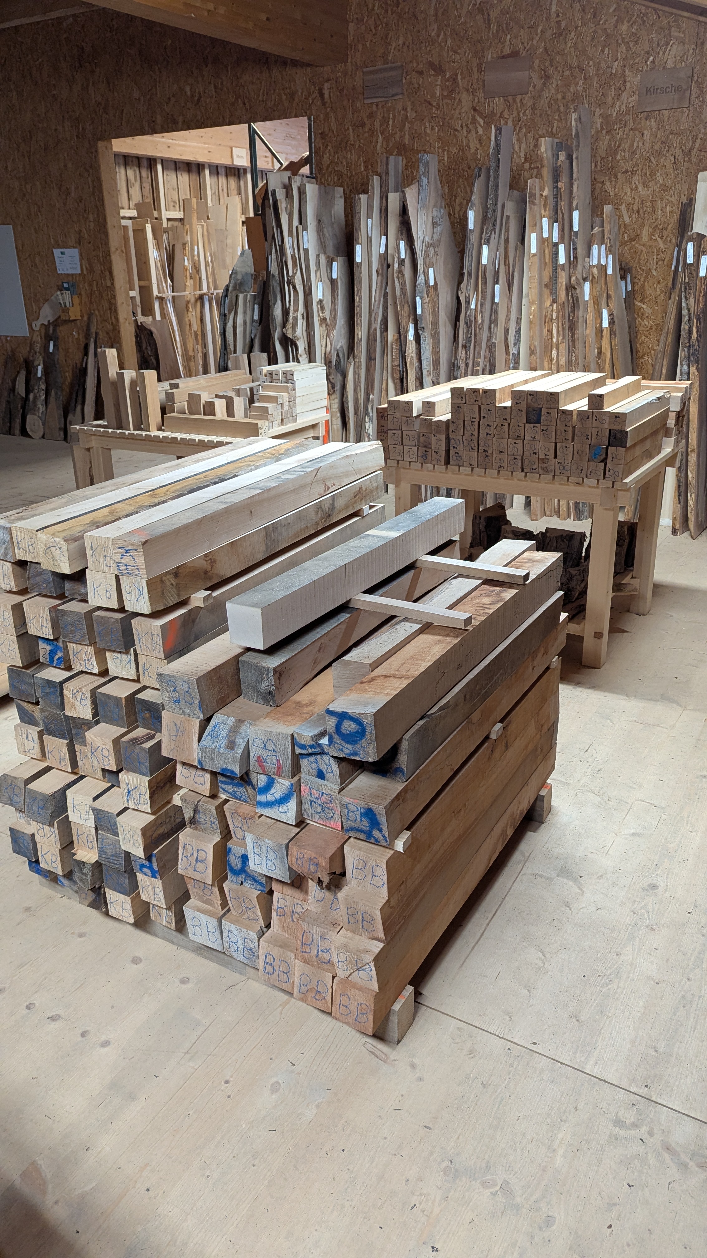 Jedes Stück Holz bringt seinen eigenen Ausdruck und seinen Ursprung im Allgäu mit.